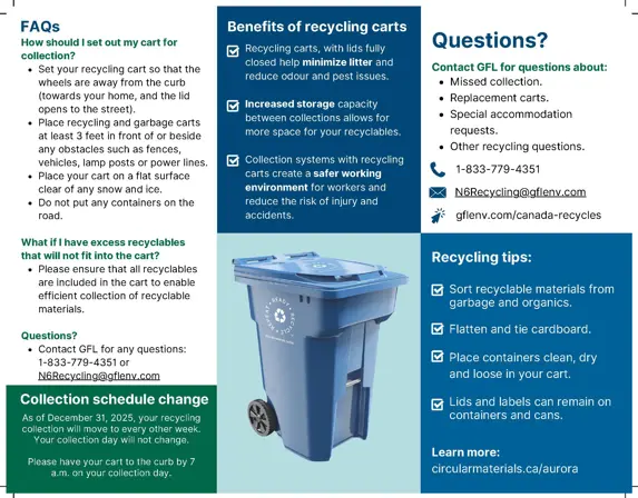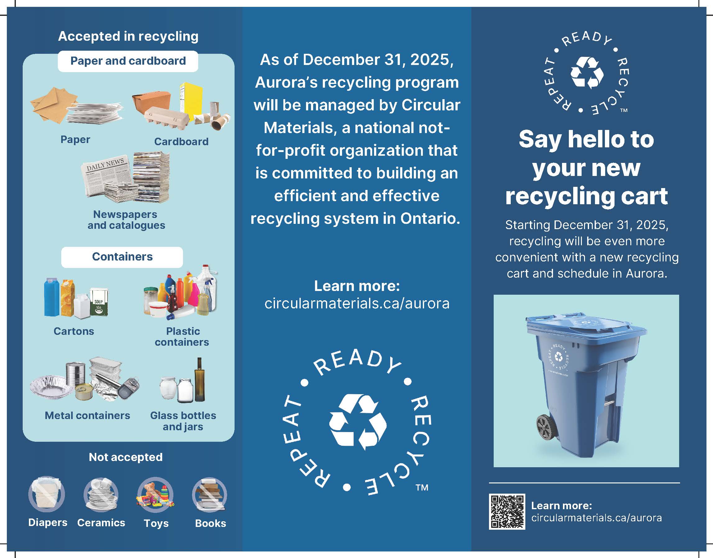 Starting December 31, 2025, Circular Materials (CM), will be introducing changes to how recycling is collected in the Town of Aurora.
